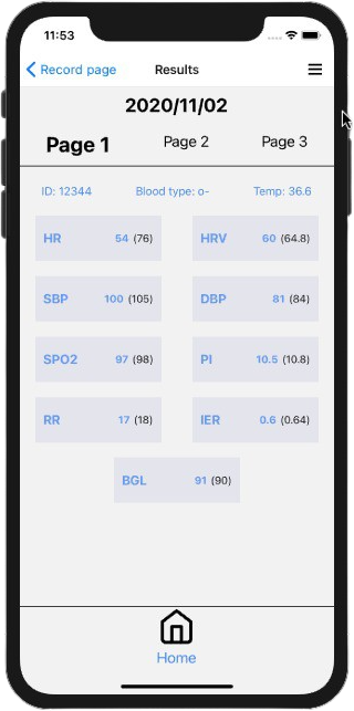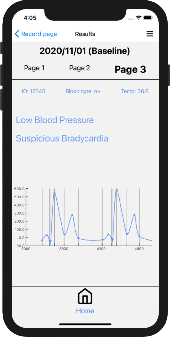 Revolutionary and patented method enables fast critical health parameters test, warnings and baseline information presentation.